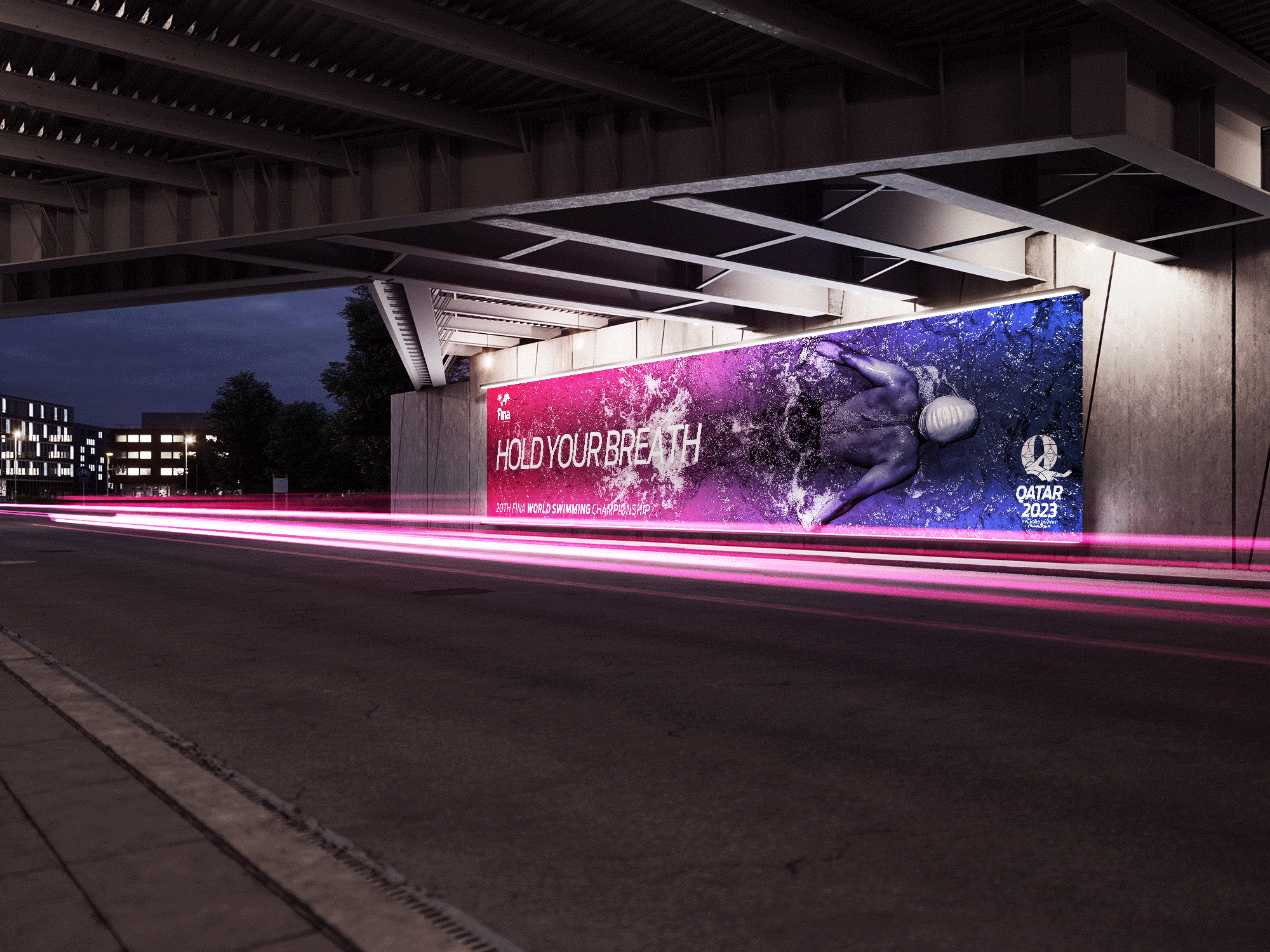 The 20th World Aquatics World Championships in Qatar is a creative campaign and brand project built around the central campaign idea “Hold Your Breath.” The project captures the intensity, precision and emotional tension of aquatic sports, translating them into a unifying campaign and a distinctive brand expression.